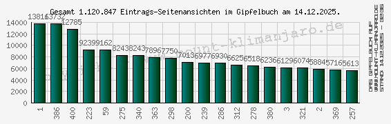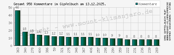 Die gesamten Kilimanjaro-Gipfelbucheinträge am 13.12.2025 Verteilung aller Einträge nach den Kategorien