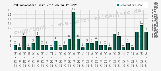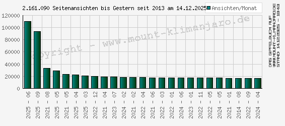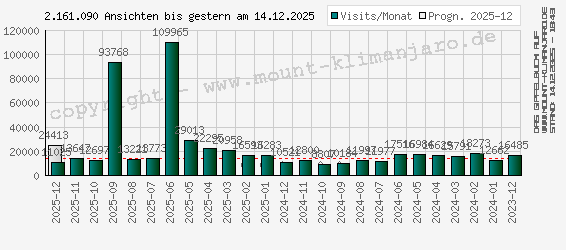 Die gesamten Kilimanjaro-Gipfelbucheinträge am 13.12.2025 Verteilung aller Einträge auf die einzelnen Monate im Jahr