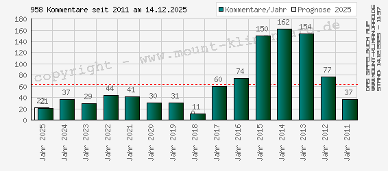 Die gesamten Kilimanjaro-Gipfelbucheinträge am 13.12.2025 Verteilung der Einträge auf die Jahre mit AVG