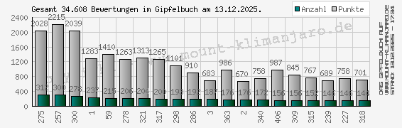 Information zur Mount Kilimanjaro Gipfelbuch Statistik: