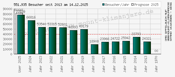 Da zu den Kilimanjaro-Besteigungen keine offiziellen Zahlen veröffentlicht werden, kann man sich hier zumindest über die Besteigungen aus dem deutschsprachigen Raum einen ersten Überblick verschaffen.