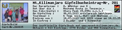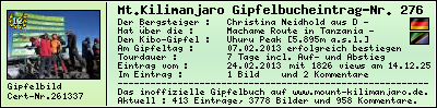 The inofficial Mount Kilimanjaro Summit Log at www.mount-kilimanjaro.de - Version 2.0 beta ...