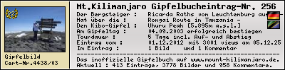 Gratulation zum heutigen 20. Jahrestag deiner erfolgreichen Kilimanjaro-Besteigung am 14.12.2004 via Rongai Route.
