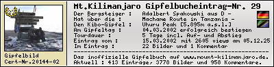 The inofficial Mount Kilimanjaro Summit Log at www.mount-kilimanjaro.de - Version 2.0 beta ...