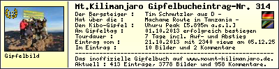Kilimanjaro-Gipfelbucheintrag Nr. 314