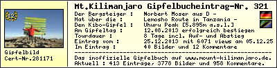 The inofficial Mount Kilimanjaro Summit Log at www.mount-kilimanjaro.de - Version 2.0 beta ...