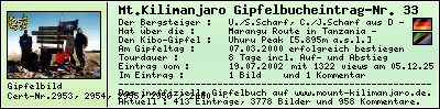 The inofficial Mount Kilimanjaro Summit Log at www.mount-kilimanjaro.de - Version 2.0 beta ...