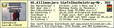The inofficial Mount Kilimanjaro Summit Log at www.mount-kilimanjaro.de - Version 2.0 beta ...