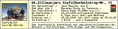 The inofficial Mount Kilimanjaro Summit Log at www.mount-kilimanjaro.de - Version 2.0 beta ...