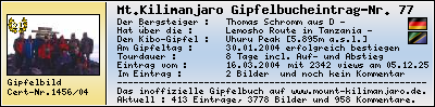 The inofficial Mount Kilimanjaro Summit Log at www.mount-kilimanjaro.de - Version 2.0 beta ...