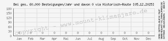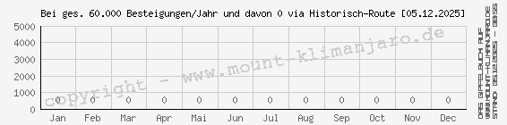 HistorischBedeutende Aufstiege auf diversen Routen hier zur Erinnerung Mount Kilimanjaro mit Historisch » Routen-Statistik für die Historisch nach Gipfelbucheinträgen : - Der letzte Eintrag für die Historisch erfolgte am : 06.05.2020 - Die Anzahl der Einträge für die Historisch : 6 Einträge von gesamt 413 Gipfelbuch-Einträgen - Wie beliebt ist die Historisch im Vergleich zu den anderen Routen am Mount Kilimanjaro nach Gipfelbuch-Einträgen : --- Die Historisch : 6 von 413 = 1.45 % --- Die Marangu Route : 121 von 413 = 29.3 % --- Die Umbwe Route : 8 von 413 = 1.94 % --- Die Machame Route : 161 von 413 = 38.98 % --- Die Lemosho Route : 61 von 413 = 14.77 % --- Die Shira Route : 1 von 413 = 0.24 % --- Die Rongai Route : 31 von 413 = 7.51 % --- Die Kikeleva Route : 24 von 413 = 5.81 %