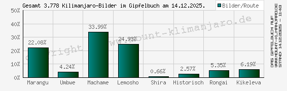 Der gesamte Bildupload im Kilimanjaro-Gipfelbuch am 13.12.2025 Verteilung der Bilder auf die einzelnen Routen bzw. Gipfelbuch-Kategorien : absolut