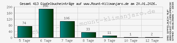 Die Tourdauer der Kilimanjaro-Gipfelbucheinträge am 20.01.2026
