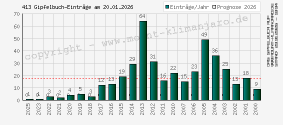 Information zur Mount Kilimanjaro Gipfelbuch Statistik: