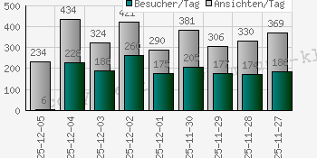 Auswertung des Ratings des Eintrages - Rating-Points : 4670 Pts - View-Points : 6895 Pts / 13800 max.Pts - Picture-Points : 525 Pts - Certificate-Points : 0 Pts - Description-Points : 56 Pts - Comment-Points : 100 Pts - Total-Points : 12398 Pts / 23811 max.Pts - Star-Value : 52.07 % = 5.2 Red Stars