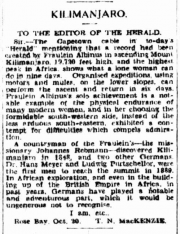 | 23:31, 25. Feb. 2017 | 1890 03 13 Morning Bulletin Rockhampton 600px.jpg (Datei) | 117 KB | Detlev | (1890-03-13 Morning Bulletin Rockhampton : Moutainering in Central Afrika Category:Bilder-Kilimanjaro Literatur) | 1 | |