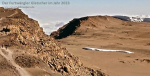 - Der Furtwängler Gletscher liegt auf dem Boden der Kibo Kaldera neben dem Reusch Krater zum Western Breach hin ausgerichtet. Da dieser Gletscher im gesamten Umfang gut vom Gipfel (Uhuru Peak - 5.895 m) aus zu sehen und daher auch ein begehrtes Fotoobjekt der Kibo-Besteiger ist, lässt sich an diesen Bilder sehr gut der Gletscherrückgang am Mount Kilimanjaro nachvollziehen.