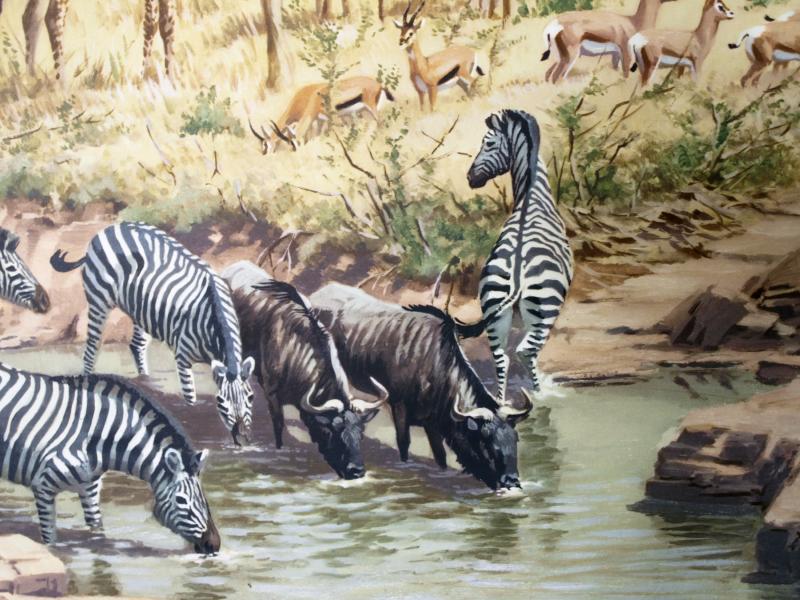 1960 - Michael M. Kiefer Schulwandkarte In der ostafrikanischen Steppe - Detail Zebras