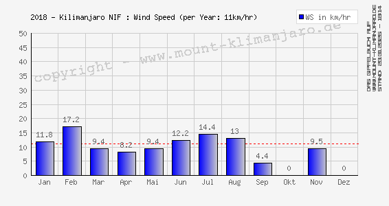 2018 - Kilimanjaro (NIF): Windgeschwindigkeit (Ø) - Wind Speed (mean)