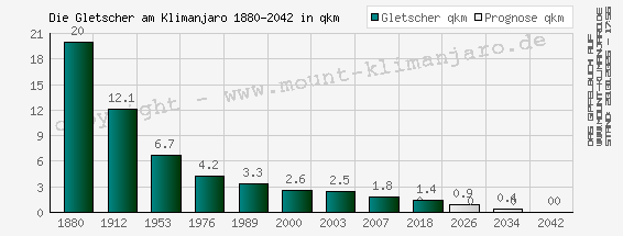 1880 - 2042 Die Abnahme der Gletscherfläche am Mount Kilimanjaro