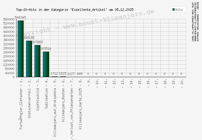 • Die Galerie wird fortgeführt, auch mit Unterstützung der Mitglieder des Mount-Kilimanjaro-Forums !, wo ein aktuelles Fotogesuch zu dem Motiv "Furtwängler-Gletscher vom Uhuru Peak aus" als Anfrage an alle potentiellen Kibo-Besteiger veröffentlicht ist.