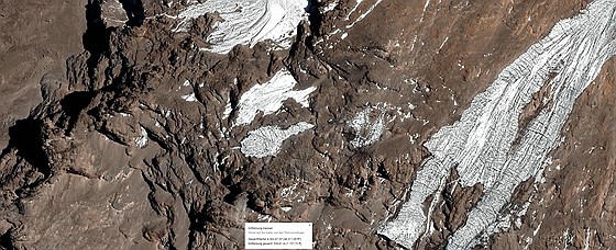 • Der Heim Gletscher liegt als Einzelgletscher am Südhang des Kibos und war ursprünglich Teil des gewaltigen, zusammenhängenden südlichen Eisfeldes.