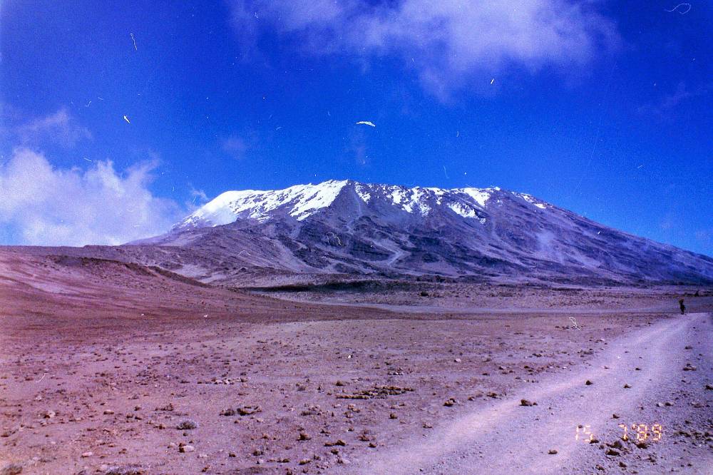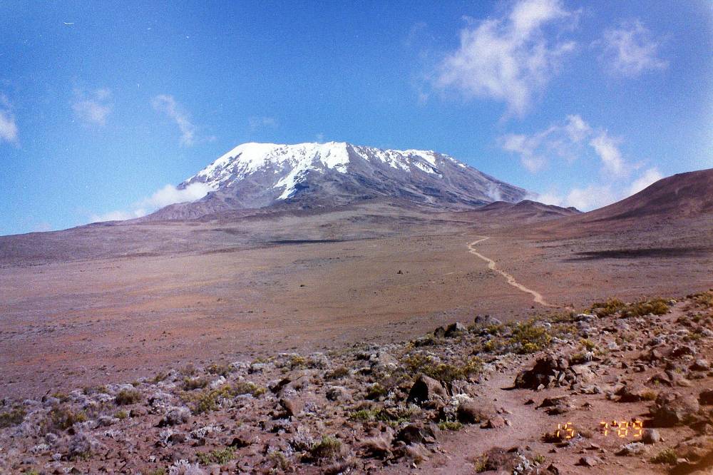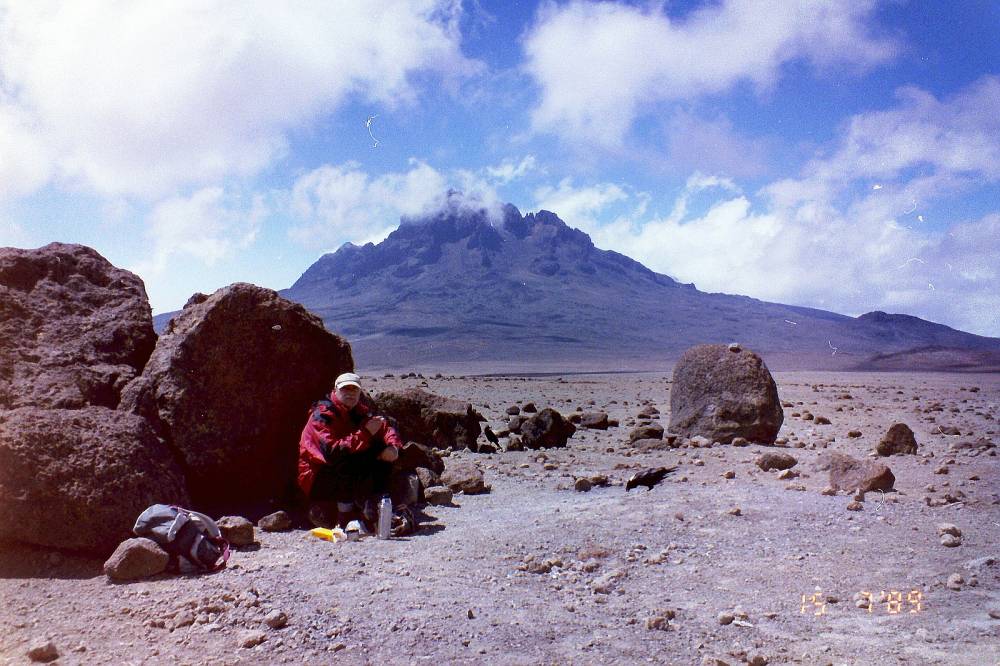Am Gillmans Point mit Blick auf den Kibo-Saddle und die Kibo Hütte