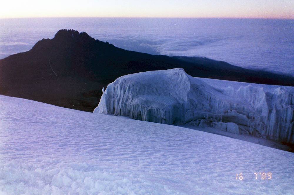 Auch an der Kibo-Hütte sollte man die Maxime "walk high, sleep low" umsetzen und so nach dem Abendbrot noch einige Höhenmeter auf dem Trail zum Gillmans Point machen, um so auch die grandiose Sicht auf den Mawenzi in der Abendsonne genießen zu können.