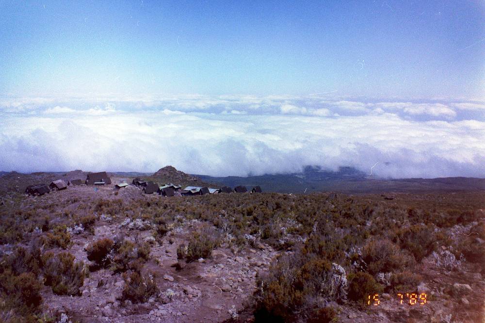 Da die Gipfeletappe des nächsten Tages mit dem Aufstieg bereits gegen Mitternacht beginnt, ist für diesen Tag eine frühzeitige Nachtruhe ab ca. 19.00 Uhr angesagt. Das kurze Schlafen in Mont-Blanc-Höhe in dem nichttemperierten, kargen Steinbau mit den überbeanspruchten Doppelstockbetten ist anstrengend und bereitet vielen Besteigern erhebliche Probleme. So ist es dann auch nicht verwunderlich, dass hier nach Beendigung der Nachtruhe gegen 0.00 Uhr ein erheblicher Teil der Touristen die Besteigung abbricht. Statt des nächtlichen Krateraufstieges steigen sie dann nochmals in die Betten und treten im Laufe des späten Vormittages mit den dann bereits zurückkommenden Gipfelsiegern den Rückmarsch zu den Horombo-Hütten an.