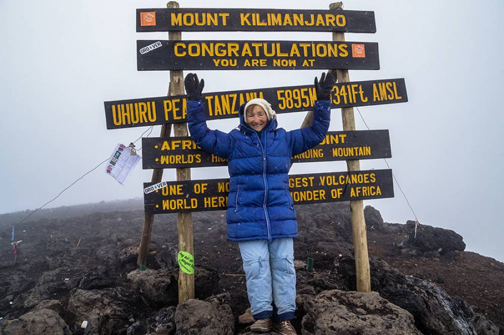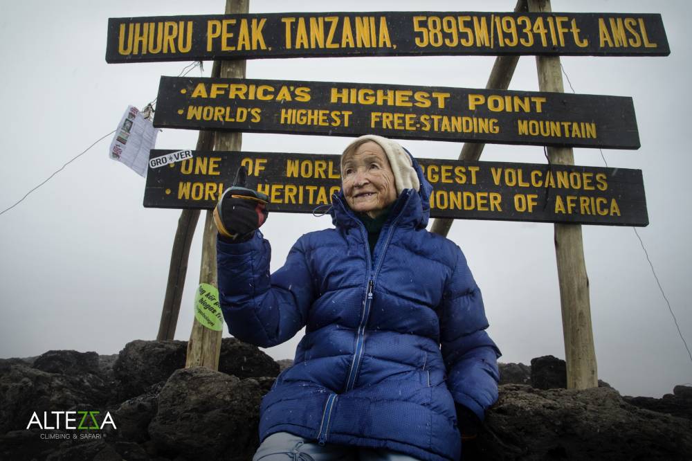 | Bilder aus dem GIPFELBUCH-EINTRAG-NR. : 369 von Angela Vorobyova am 2015-11-12 12:31:27 , Titel : Mit 86 Jahren am Uhuru Peak |