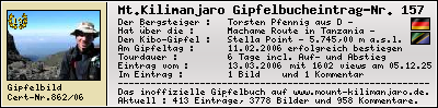 The inofficial Mount Kilimanjaro Summit Log at www.mount-kilimanjaro.de - Version 2.0 beta ...