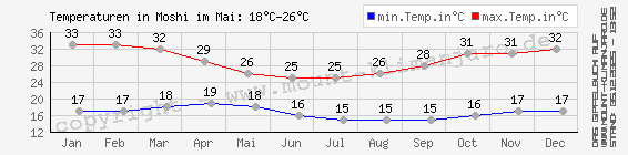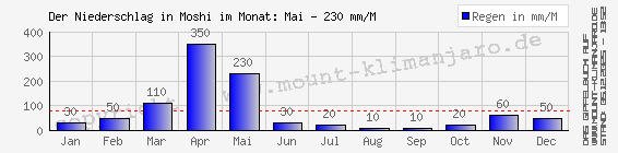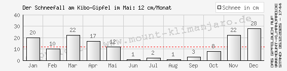 Die Kilimanjaro-Besteigungen in den 2013-er Jahren:Die Monats-Besteigungen auf allen Routen (Show/Hide)Die aktuelle Routennutzung am Mount Kilimanjaro :Die von mir / uns begangene Marangu Route wurde im Verhältnis zu den weiteren Routen am Mount Kilimanjaro entsprechend folgender Grafik von allen Besteigern aus dem Kilimanjaro-Gipfelbuch zum Gipfelaufstieg genutzt.Die gesamten Kilimanjaro-Gipfelbucheinträge am 05.12.2025 Verteilung der Gipfelbuch-Einträge auf die einzelnen Routen : prozentual Die maximalen Besteigungen am Kilimanjaro (2013) :1.0 Die Monats-Besteigungen auf allen Routen (Show/Hide)2.0 Die Monats-Besteigungen auf der Marangu Route (Show/Hide) 3.0 Die Tages-Besteigungen auf der Marangu Route (Show/Hide) Das Wetter am Kilimanjaro zu meiner Besteigung :Die durchschnittlichen Wetter- / Klimadaten am Kilimanjaro während des 25.05.2013, zum Zeitraumes meiner Gipfel-Besteigung, im Verhältnis zu den anderen Monaten sind aus dem folgenden Niederschlags- und Temperaturdiagramm zu entnehmen. Basis der Durchschnittswerte sind Meteorologische Berechnungen der letzten 20 Jahren. Die tatsächlichen Werte können somit abweichen.Die Jahreszeit zu meiner Besteigung : Ende der großen Regenzeit (Herbst) Der monatliche Durchschnitts-Niederschlag in Moshi am Fuß des Kibo in mm/M Temperatur - Mässig - min. 18°C - max. 26°C , Jahreszeit - Grosse Regenzeit . Im Besteigungungsmonat Mai - Besucherzahl: Sehr Niedrig (Keine Saison). Der monatliche Schneefall am Gipfel des Kibo ab 5.700 m a.m.S.L. im Mai in cm Im Zusammenhang mit dem Schneefall in den anderen Monaten des Jahres . Die monatlichen Durchschnitts-Temperaturen in Moshi im Mai in °C Im Zusammenhang mit den anderen Monatstemperaturen des Jahres . Die monatlichen Temperaturen in den versch. Höhenlagen am Kibo im Mai in °C Im Zusammenhang mit den anderen Monatstemperaturen des Jahres . Rechtlicher Hinweis : Die aufgeführten Klimawerte sind Durchschnittswerte und daher nur bedingt als Klimaprognose / Wettervorhersage geeignet. Ein Rechtsanspruch daraus ist prinzipiell ausgeschlossen. Meine Kilimanjaro-Gipfelbilder (40 Bilder) :Diese Galerie ist für die Betrachtung mit Smartphones optimiert.Die folgenden Bilder meiner Kilimanjaro-Besteigung habe ich meinem Gipfelbucheintrag hinzugefügt.