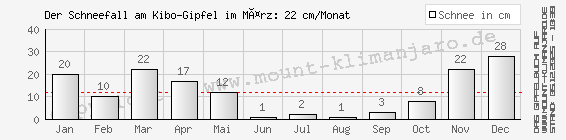 Die Kilimanjaro-Besteigungen in den 2014-er Jahren:Die Monats-Besteigungen auf allen Routen (Show/Hide)Die aktuelle Routennutzung am Mount Kilimanjaro :Die von mir / uns begangene Lemosho Route wurde im Verhältnis zu den weiteren Routen am Mount Kilimanjaro entsprechend folgender Grafik von allen Besteigern aus dem Kilimanjaro-Gipfelbuch zum Gipfelaufstieg genutzt.Die gesamten Kilimanjaro-Gipfelbucheinträge am 05.12.2025 Verteilung der Gipfelbuch-Einträge auf die einzelnen Routen : prozentual Die maximalen Besteigungen am Kilimanjaro (2013) :1.0 Die Monats-Besteigungen auf allen Routen (Show/Hide)2.0 Die Monats-Besteigungen auf der Lemosho Route (Show/Hide) 3.0 Die Tages-Besteigungen auf der Lemosho Route (Show/Hide) Das Wetter am Kilimanjaro zu meiner Besteigung :Die durchschnittlichen Wetter- / Klimadaten am Kilimanjaro während des 14.03.2014, zum Zeitraumes meiner Gipfel-Besteigung, im Verhältnis zu den anderen Monaten sind aus dem folgenden Niederschlags- und Temperaturdiagramm zu entnehmen. Basis der Durchschnittswerte sind Meteorologische Berechnungen der letzten 20 Jahren. Die tatsächlichen Werte können somit abweichen.Die Jahreszeit zu meiner Besteigung : Beginn der großen Regenzeit (Sommer/Herbst) Der monatliche Durchschnitts-Niederschlag in Moshi am Fuß des Kibo in mm/M Temperatur - Mässig - min. 18°C - max. 32°C , Jahreszeit - Grosse Regenzeit . Im Besteigungungsmonat März - Besucherzahl: Mittel (Nachsaison). Der monatliche Schneefall am Gipfel des Kibo ab 5.700 m a.m.S.L. im März in cm Im Zusammenhang mit dem Schneefall in den anderen Monaten des Jahres . Die monatlichen Durchschnitts-Temperaturen in Moshi im März in °C Im Zusammenhang mit den anderen Monatstemperaturen des Jahres . Die monatlichen Temperaturen in den versch. Höhenlagen am Kibo im März in °C Im Zusammenhang mit den anderen Monatstemperaturen des Jahres . Rechtlicher Hinweis : Die aufgeführten Klimawerte sind Durchschnittswerte und daher nur bedingt als Klimaprognose / Wettervorhersage geeignet. Ein Rechtsanspruch daraus ist prinzipiell ausgeschlossen. Meine Kilimanjaro-Gipfelbilder (0 Bilder) :Diese Galerie ist für die Betrachtung mit Smartphones optimiert.Die folgenden Bilder meiner Kilimanjaro-Besteigung habe ich meinem Gipfelbucheintrag hinzugefügt.