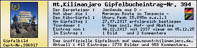 Kilimanjaro-Gipfelbucheintrag Nr. 394