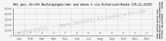 HistorischBedeutende Aufstiege auf diversen Routen hier zur Erinnerung Mount Kilimanjaro mit Historisch » Routen-Statistik für die Historisch nach Gipfelbucheinträgen : - Der letzte Eintrag für die Historisch erfolgte am : 06.05.2020 - Die Anzahl der Einträge für die Historisch : 6 Einträge von gesamt 413 Gipfelbuch-Einträgen - Wie beliebt ist die Historisch im Vergleich zu den anderen Routen am Mount Kilimanjaro nach Gipfelbuch-Einträgen : --- Die Historisch : 6 von 413 = 1.45 % --- Die Marangu Route : 121 von 413 = 29.3 % --- Die Umbwe Route : 8 von 413 = 1.94 % --- Die Machame Route : 161 von 413 = 38.98 % --- Die Lemosho Route : 61 von 413 = 14.77 % --- Die Shira Route : 1 von 413 = 0.24 % --- Die Rongai Route : 31 von 413 = 7.51 % --- Die Kikeleva Route : 24 von 413 = 5.81 %