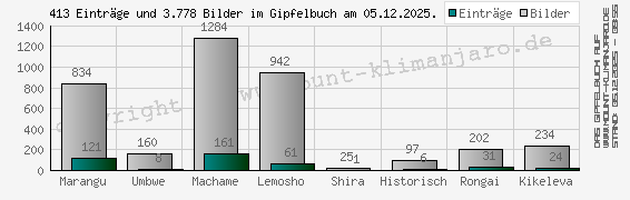 Der gesamten Bildupload im Kilimanjaro-Gipfelbuch am 05.12.2025 Verteilung der Bilder und Einträge auf die einzelnen Routen bzw. Gipfelbuch-Kategorien : absolut