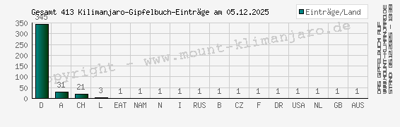 Die gesamten Kilimanjaro-Gipfelbucheinträge am 05.12.2025 Verteilung aller Einträge nach den Herkunftsländern