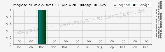 Die Prognose der Kilimanjaro-Gipfelbucheinträge am 05.12.2025 Verteilung aller Einträge auf die einzelnen Monate im Jahr 2025 als Prognose